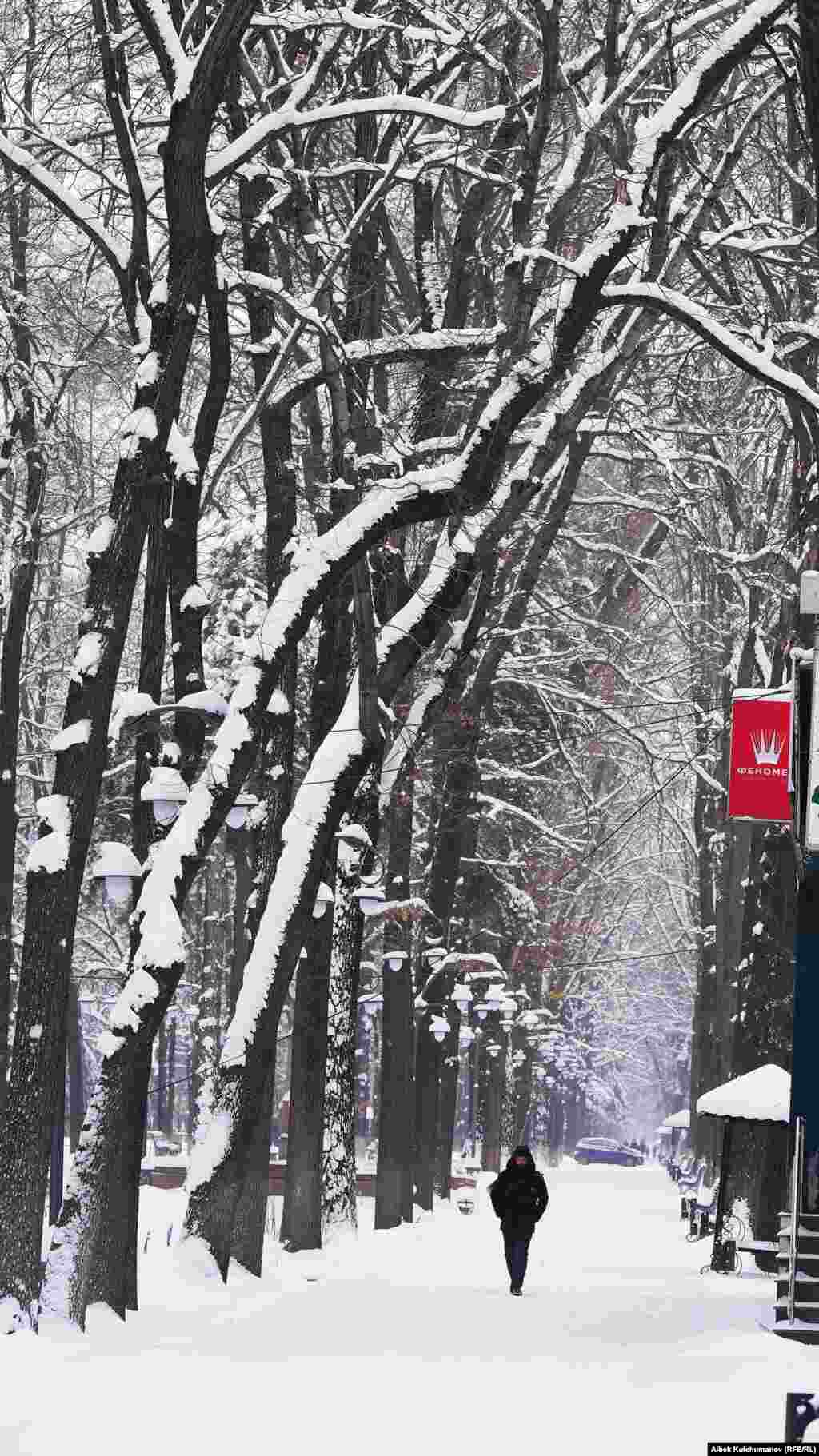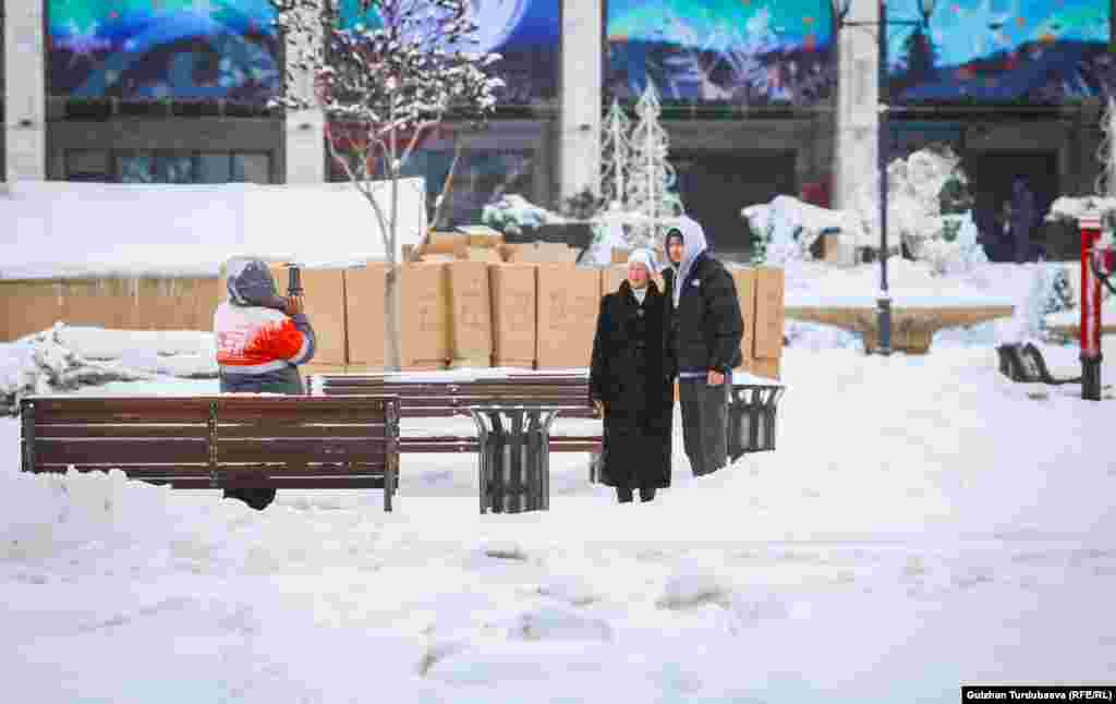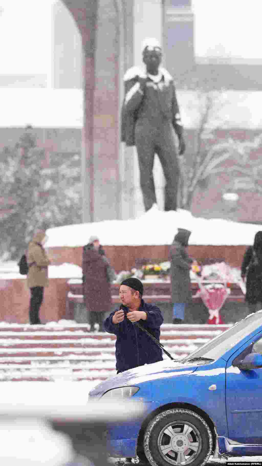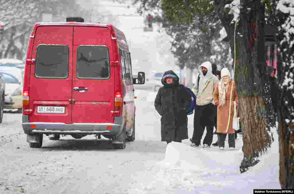 Снегопад в Бишкеке: пробки на дорогах, толпы на остановках и украшение главной елки