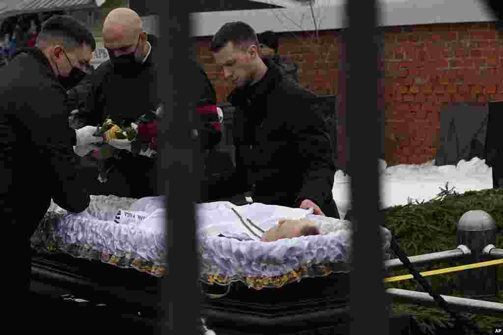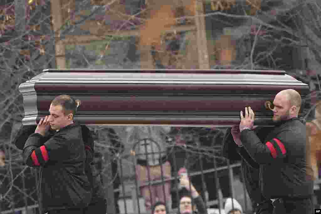 Гроб с телом Алексея Навального вносят на территорию кладбища.