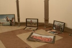 На полу фотография с поломанной рамкой, которую сорвал со стены Шайло ЖекшенбаевШайло не выдержал, выхватил эту фотографию со стены и бросил ее на пол, и сказал: «Раз она плохая, пусть будет уничтожена». Фотографы были готовы рвать свои фотографии. Я сказала, что раньше про такие случаи только читала и видела в кино. Тут невольно вспоминаешь знаменитую бульдозерную выставку Никиты Хрущева. Никогда не предполагала, что сама окажусь свидетелем такого явления.
