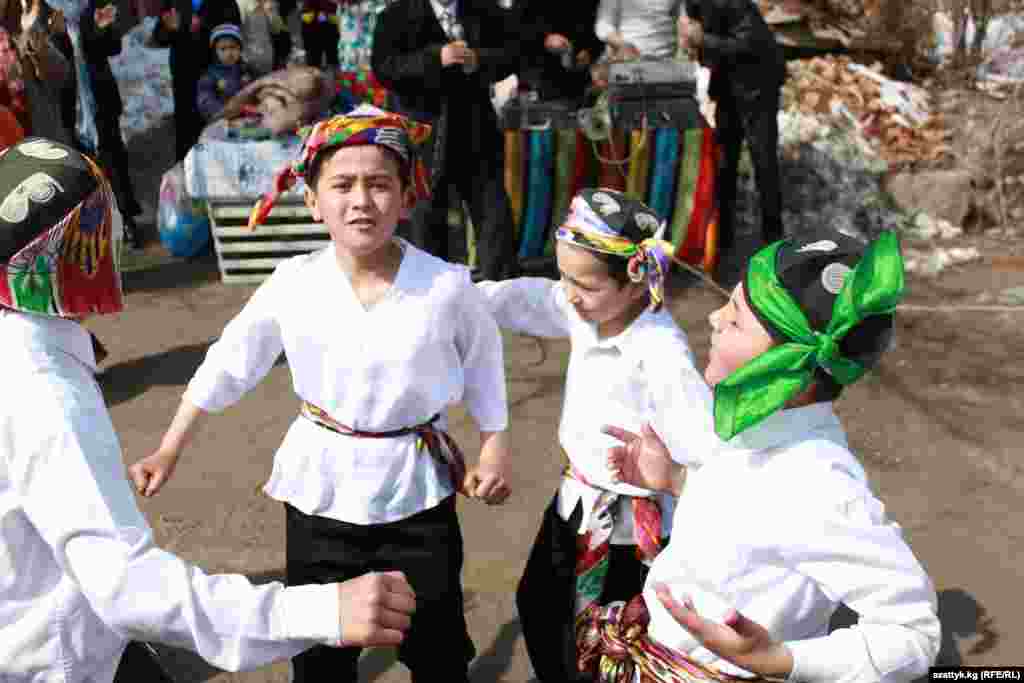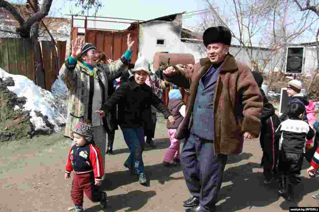 Жители микрорайона Черемушки, который больше всех пострадал во время трагических событий 2010 года, с песнями и танцами встретили праздник Нооруз. Фотографии предоставлены Сахирой Назаровой, правозащитная организация "Эдвокаси центр по правам человека", Ош, 22-23 марта 2012.