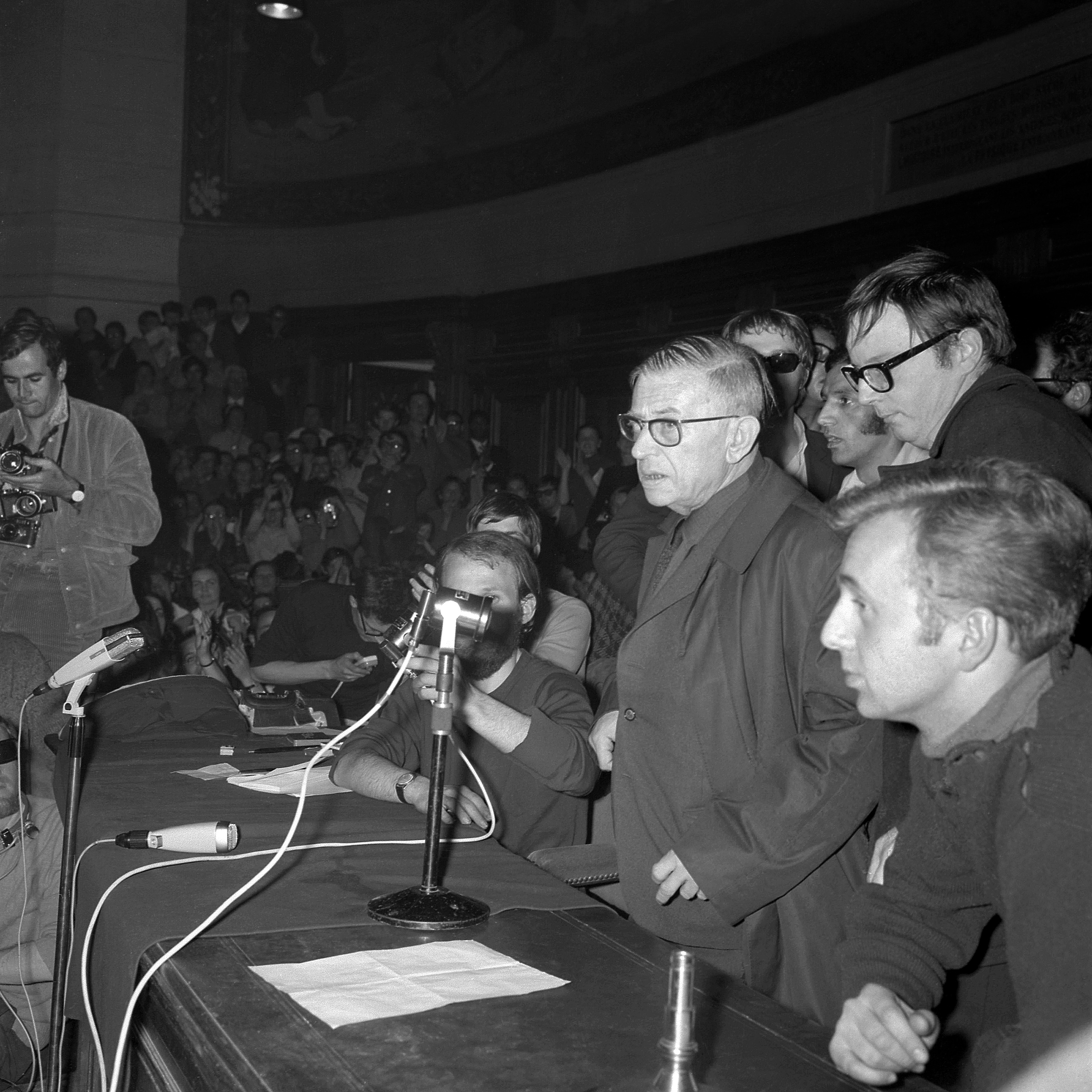 Перед студентами выступает главный французский маоист тех лет, великий Жан-Поль Сартр.